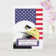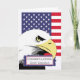 Congratulations Great-Grandson. Paper greeting card features a bald eagle and the American flag. Contemporary, patriotic, and bold design for a congratulations on basic training graduation. Image and verse copyright © Shoaff Ballanger Studios.