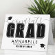 Celebrate this special milestone with a stylish and timeless graduation card. The front features "Congrats Grad" in elegant gray script and bold black typography, creating a striking and celebratory design. Below, there's space to personalize the card with the graduate’s name, school, and "Class of 2026" (or any year), making it a thoughtful keepsake. Two graduation cap icons add a festive touch to complete the look.