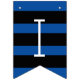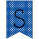 Celebrate your graduate with this playful graduation party bunting garland! The design features a grad cap on the lead pennant followed by alternating royal blue stripes and polka dot flags with bold black letters spelling "Congratulations." Hang across a dessert table, photo wall, or party entrance for a cheerful focal point at any high school or college graduation celebration. Letters and colors are fully customizable.