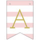 Celebrate your graduate with this charming graduation party bunting garland! The design features a grad cap on the lead pennant followed by alternating pink stripes and polka dot flags with gold letters spelling "Congratulations." Hang across a dessert table, photo wall, or party entrance for a feminine focal point at any high school or college graduation celebration. Letters and colors are fully customizable.