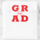 GRAD in bold red letters fills the corners of these grad square stickers. Congratulations above the name of your graduate and the Class of below. SEE ENTIRE COLLECTION of pre-done color combinations, invitations, paper plates, napkins, signs and more in our store.