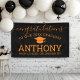 Celebrate the graduate with a custom banner. Personalize the banner and hang it up to make an eye-catching graduation party decor. You can also hang it at home or at an event. Make sure to change any colors and other design elements in the advanced design area.