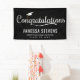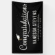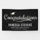 Modern graduation banner featuring bold white lettering with an black background. The design features a white graduation cap with the phrase "Congratulations ". Personalize navy graduation banner by adding the graduate's name, school name, and graduation year. For a more custom look, change the background to your school colors. The graduation poster is perfect to use for your high school or college graduation party!