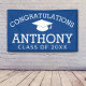 Celebrate the graduate with a custom banner. Personalize the banner and hang it up to make an eye-catching graduation party decor. You can also hang it at home or at an event. Make sure to change any colors and other design elements in the advanced design area.