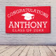 Celebrate the graduate with a custom banner. Personalize the banner and hang it up to make an eye-catching graduation party decor. You can also hang it at home or at an event. Make sure to change any colors and other design elements in the advanced design area.