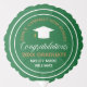 This green and gold custom senior graduation party balloon features classy white typography under a high school or college grad cap for the class of 2026. Customize with your graduating year and senior graduate name under the chic Congratulations calligraphy.