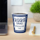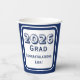 Design features a navy-blue background to a white rectangular shape bearing the text you supply which is featured in a navy-blue font. Design is displayed on both sides of cup. Each side bears a different bottom message. Designed to coordinate with the "High School Graduation Party" collection. Available in a variety of colors.