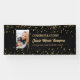 Designed with celebratory gold confetti on a black background, this banner sends a bold message of congratulations. Personalize it with your graduate's photo, name, class year, and school name etc. for a unique and memorable touch. Display this banner at the party to make a statement and honor your graduate's accomplishments.