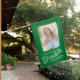 Say "congratulations" to your graduate with this personalized house flag. The design features 2 vertical photos on a green background and is accented with modern stylish handwriting script.