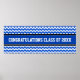 Customizable graduation congratulations class of banner poster in fun and bold bright blue, black and white retro chevron zigzags stripes pattern.