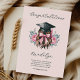 Feminine graduation congratulations card with illustration of female graduate wearing a grad cap and a pink bow in her hair. Edit using the design tool to change hair color (brown, blonde, red or black) and feel free to keep or edit the poem. Personalize with your graduate's name and your sign off. Order professionally printed or as a digital download to text or send digitally.
