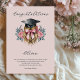 Feminine graduation congratulations card with illustration of female graduate wearing a grad cap and a pink bow in her hair. Edit using the design tool to change hair color (brown, blonde, red or black) and feel free to keep or edit the poem. Personalize with your graduate's name and your sign off. Order professionally printed or as a digital download to text or send digitally.