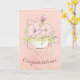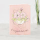 Beautiful congratulations greeting card to send to someone special. Beautiful pink rose flower arrangement in a tea cup. Personalize inside message with the recipients name. Let them know that you are proud of their achievement.