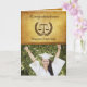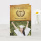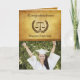 Photo of your favorite graduate with a congratulations in old fashioned font and a scale of justice with brown laurel leave wreath. Background is a parchment paper color of brown, cream and yellowish gold. Great greeting card for the Law School Graduate.