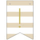 Stylish and chic graduation party bunting banner features "Congratulations!" wording with grad cap motif, modern stripes, and sweet polka dot pattern details. Elegant and pretty white, gold, beige, pale ballet pink, and blush pink color scheme.