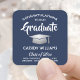 Add a personalized touch to college or high school graduation announcements and invitations with these custom navy blue, silver and white square stickers / envelope seals. All text is simple to customize. Design features a faux metallic brushed stainless steel mortar board, stylish modern typography, and handwritten style script calligraphy. Please note that silver is printed color, not foil. Makes an elegant addition to graduation party favors and decorations. Congratulations to the graduate!