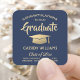 Add a personalized touch to college or high school graduation announcements and invitations with these custom navy blue and gold square stickers / envelope seals. All text is simple to customize. Design features a faux metallic mortar board, stylish modern typography, and hand written style script calligraphy. Please note that gold is printed color, not foil. Makes an elegant addition to graduation party favors and decorations. Congratulations to the graduate!