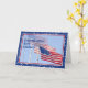 Congratulations card to the Navy graduate. The card has three tiled USA flags with the one in the background more transparent, the second flag is less transparent and the final front flag is normal view. The image is surrounded by a border in navy blue with white stars.