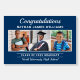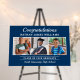 A polished graduation welcome sign in classic navy featuring elegant Congratulations script above the graduate's name and three photos capturing their journey over the years. The Class of Graduate text and school name are accented by crisp white rule lines on the lower portion. A refined school-color choice for any celebration. Fully customizable with your own photos and text.