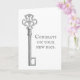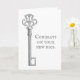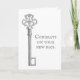 Congratulations on your new home, personalized custom quote template complete with a vintage illustration of an antique silver key. Cute and funny, fun to personalize.