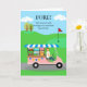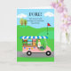 Custom front, add your text to the cover of this greeting card congratulating a young lady on her new job as a golf course beverage cart attendant. Colorful scene of a young lady driving a beverage cart on the golf course. Golf puns abound in this design and message inside. Art, image, and verse copyright © Shoaff Ballanger Studios.