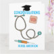 A personalized male nurse graduate card featuring a graduate cap, blue stethoscope, band-aid and a needle. You will be able to easily personalize the front of this nurse graduate card with the nurse's name in blue text. The inside reads a congratulations graduate message hat can be personalized by you and the back features a grad cap along with the class year, which you can also personalize. This big nursing school graduate card is a great keepsake for the nurse grad.