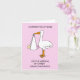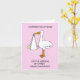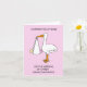 A cartoon of a giant stork holding a baby girl in a white sheet which hangs from the stork's beak. The image is set against a pink background and is accompanied by the words 'Congratulations on the arrival of your first Granddaughter'.