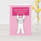 A large cartoon white cat standing up on it's back paws. The cat is holding up a pink sign that says 'Congratulations on being made head girl'. The image has a pale pink background.