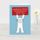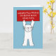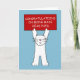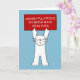 A large cartoon white cat standing up on it's back legs. The cat is holding above it's head a red sign that says 'Congratulations on being made head pupil'.