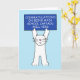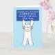 A cartoon white cat standing up on his back paws and holding a blue sign that says 'Congratulations on being made school captain Will Hird'.