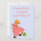 This charming congratulations card has a charming vintage picture of a little girl with curly hair. She is wearing a pink dress and a ruffled white petticoat. She is kicking a green and yellow ball. You can change the text, front and back.