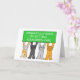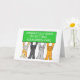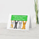 Four cartoon cats holding up a lime green colored banner which says 'Congratulations on getting your green card'.