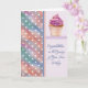 Congratulations card for someone with a new bakery. This is a colorful card with a big cup cake and lavender frosting with a designer polka dot material on the left. Pretty card for the occasion. Thanks to the hungryjpeg for some of the elements in the design.