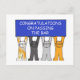 Cartoon cats holding up a large blue sign with white lettering on that says 'Congratulations on passing the bar exam'.