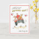 Greeting card for boy passing driving test. Humorous cartoon illustration of boy on a quad bike with dogs.