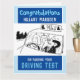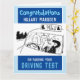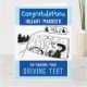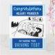 Congratulations on Passing Your Driving Test. Fun cartoon illustration of a nervous driving instructor or driving examiner. Personalise with your choice of name. Congratulations card for a newly qualified driver.