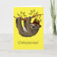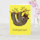Cute retirement congratulations card written in Dutch, featuring a relaxing sloth. Cover text = Relax! Inside text: Congratulations! I wish you a long and joyful retirement. Card design with clip art elements from Openclipart. Image and verse copyright © Shoaff Ballanger Studios.