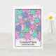 Digital illustration of pink and blue flowers in an overall pattern. Congratulations on your wedding written in Greek on the cover. Outlined in black with a white border. Bright and cheery colors. © Image by Shoaff Ballanger Studios 2012