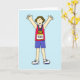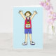A cartoon female runner with her arms in the air and the number 100 on her top. The word 'Congratulations' is written under the image. A great card for any lady celebrating her 100th marathon!
