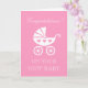 Congratulations on your new baby boy or girl custom greeting card. Cute congratulatory card with baby carriage stroller. Elegant script typography template for new mommy and birth of new son or daughter. Welcome to the world. Pastel pink or custom color background like blue or yellow. Neutral pram buggy design for newborn child. Add your own personalized wording, message, funny quote or saying on the inside. Sweet card for friends, grandson, granddaughter, grandchild, godchild etc.