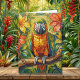 A sweet card to say congratulations on your new parrot or bird! On the front is an impasto painting style parrot and tropical flowers.