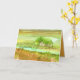 A greeting card for new owners of a ranch home in the country featuring a peaceful setting with a house and outbuildings tucked in trees in a desert vista painted with watercolor. You can edit the inside color and text to fit your needs.
