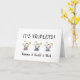personalize with triplets name, mixed triplet babies, 1 girl & 2 boys, folded greeting card for triplets, welcome triplet babies, text inside "3 sets of hands and 3 sets of eyes, triplets are like a delightful surprise. congratulations on your new bundles of joy!", customize with babies names, add more text