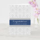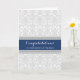 Wedding congratulations card for the parents of the bride in contemporary dark navy blue, light grey and white classic floral vintage damask pattern. Text is fully customizable for you to write your own personalized message, a unique way to congratulate the parents of the bride on the marriage of their daughter.