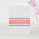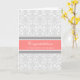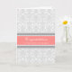 Wedding congratulations card for the parents of the bride in contemporary peach pink, grey and white classic floral vintage damask pattern. Text is fully customizable for you to write your own personalized message, a unique way to congratulate the parents of the bride on the marriage of their daughter.