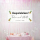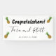 Decorate for your wedding reception hall with this custom personalized "Congratulations" vinyl party banner with pineapples, perfect for a tropical wedding theme.