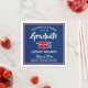 Add an elegant personalized touch to college or high school graduation party decorations with these custom red, white and blue paper napkins. All text is simple to customize. Design features a dark blue background, red mortar board cap, stylish modern typography, and handwritten style script calligraphy. Congratulations to the graduate!