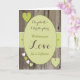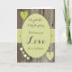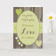 Personalize this rustic, dark *wood effect background, with white and green hearts, Wedding Day card for the Bride and Groom, with their names.