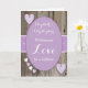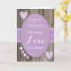 Personalize this rustic, dark *wood effect background, with white and purple hearts, Wedding Day card for the Bride and Groom, with their names.