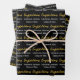This graduation wrapping paper is black. Congratulations is in an elegant gold script. Two lines of white display text are below the script. You can edit the text to show the graduate's name and the year the student is graduating. The text forms a pattern on the wrapping paper. All text can be edited or deleted as desired.
